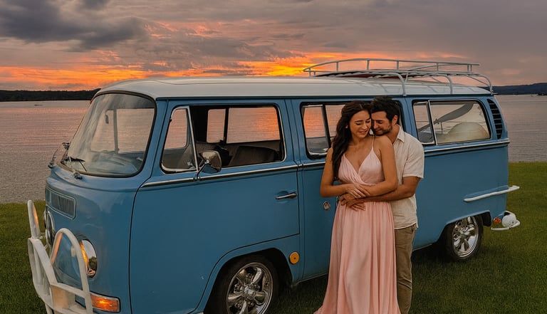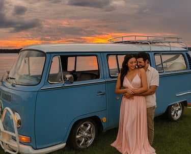 We typically need a 10x20 ft space for the bus to park, plus a little room for guests to gather and pose. A flat surface works best — driveways, parking lots, and open grass areas are perfect.